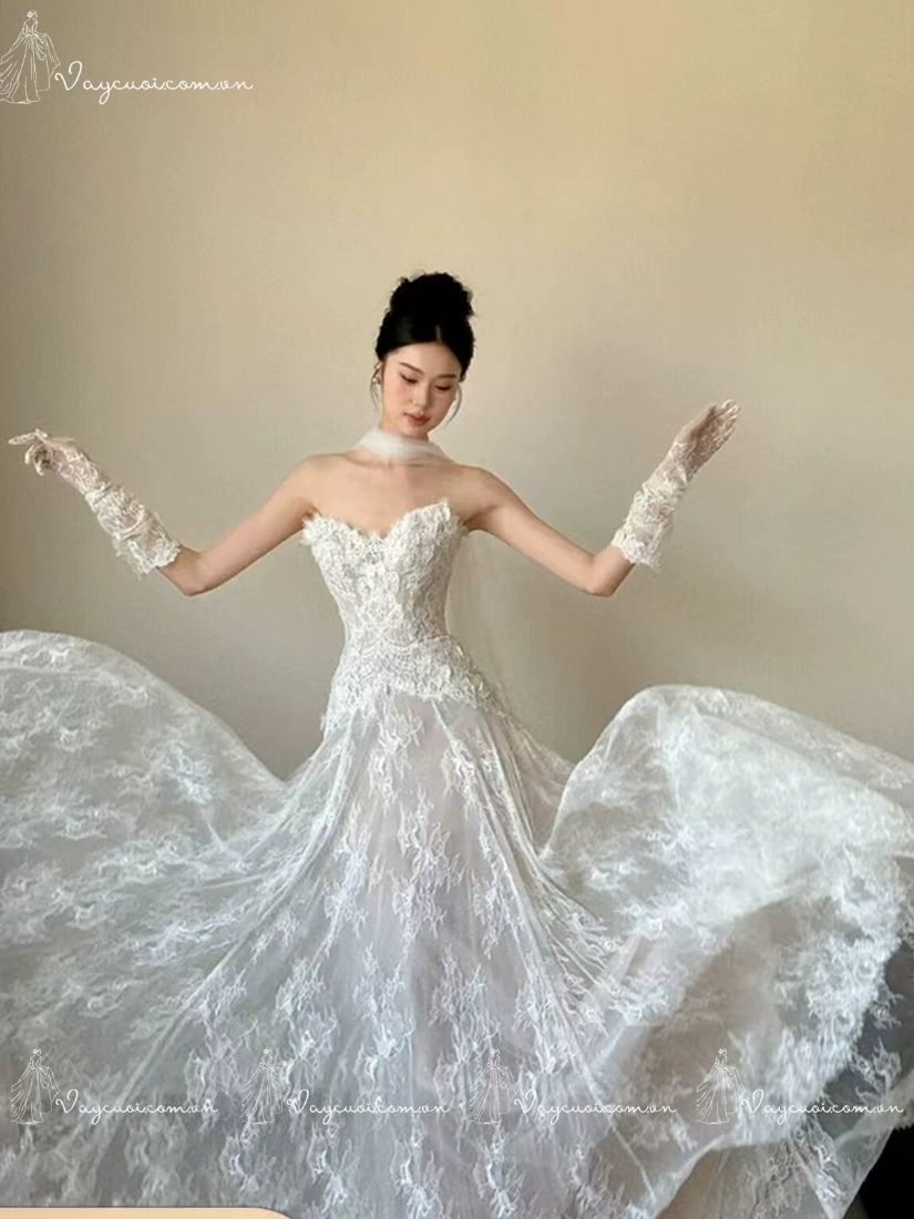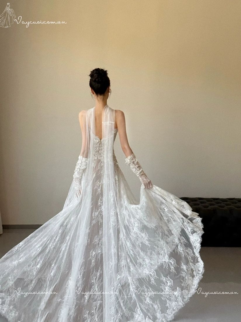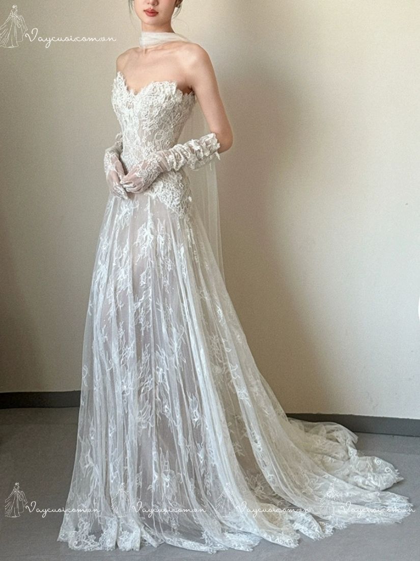 Váy Cưới Ren Không Dây