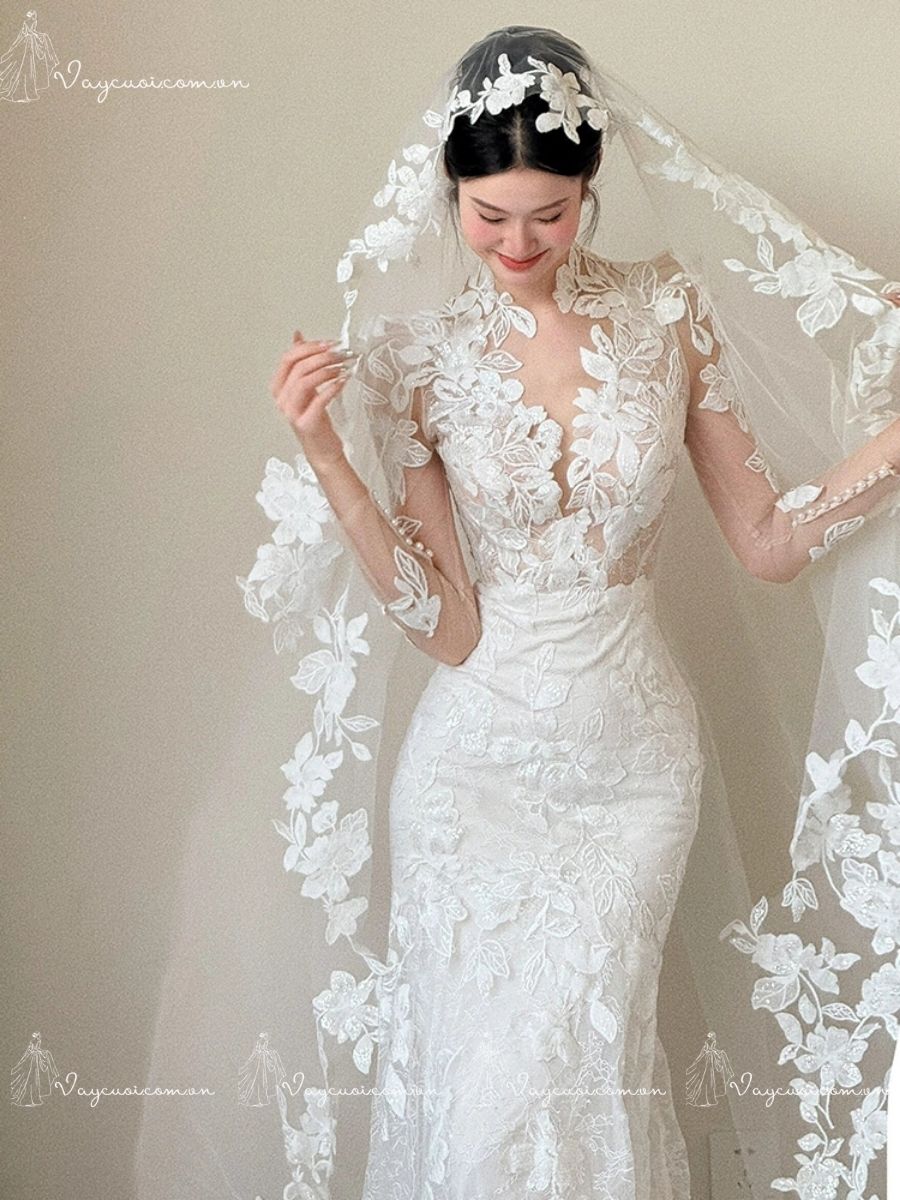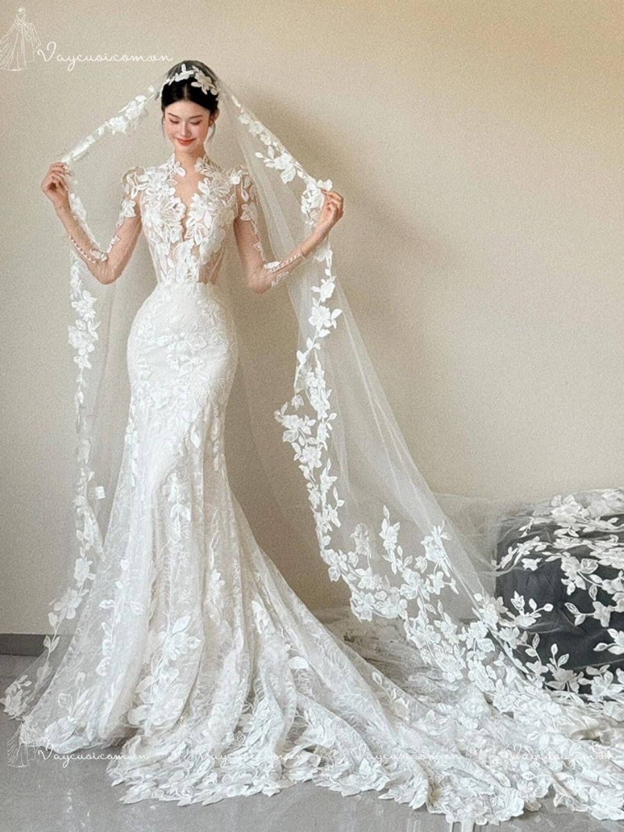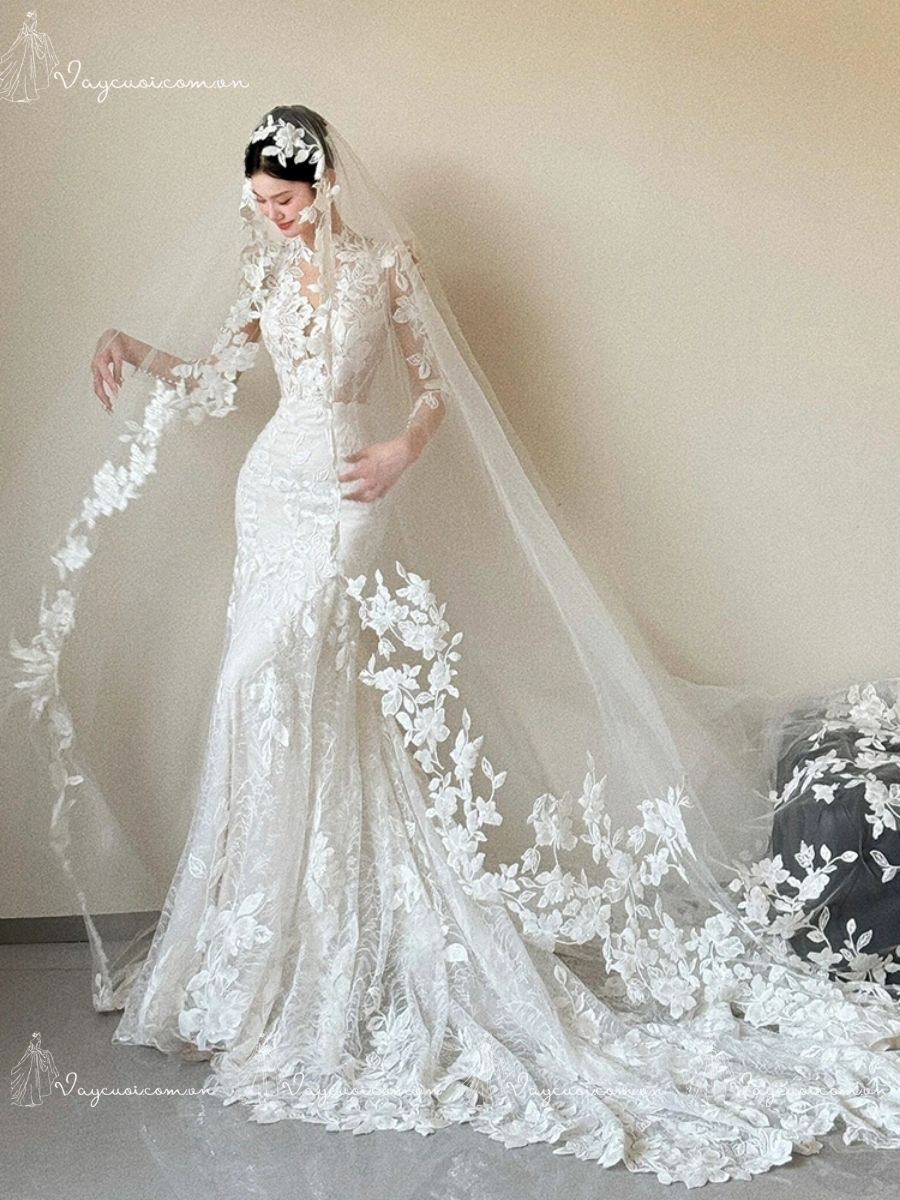 VC102 Váy Cưới Đuôi Cá Ren Pháp Thanh Lịch, Cổ Điển