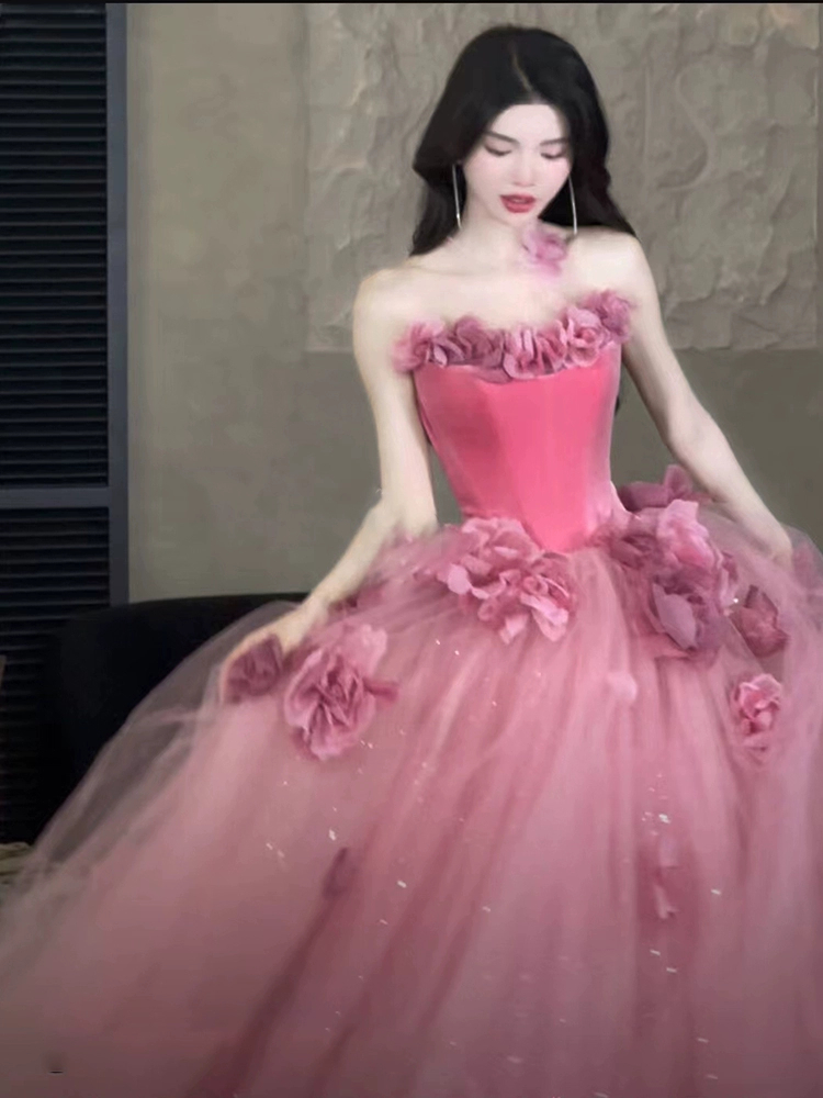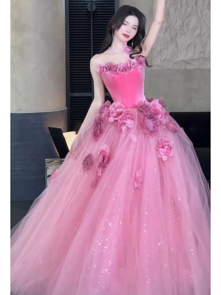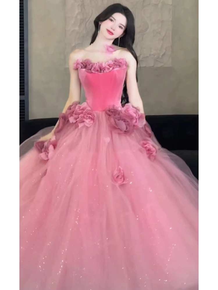 Chiếc váy dạ hội Trễ Vai Màu Hồng Nhạt này mang đến vẻ đẹp thanh lịch và lãng mạn, hoàn hảo cho phong cách công chúa trưởng thành. Tông màu hồng nhạt tinh tế, kết hợp với thiết kế trễ vai duyên dáng, lý tưởng để sử dụng làm váy cô dâu (váy phụ), váy đính hôn hoặc trang phục cho các buổi dạ hội quan trọng.