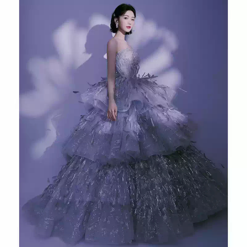Chiếc váy dạ hội lộng lẫy này là sự lựa chọn hoàn hảo để bạn tỏa sáng rực rỡ và đầy bí ẩn trong mọi đêm tiệc. Với tông màu tím/xám ánh kim độc đáo cùng thiết kế bồng bềnh, đây chính là trang phục giúp bạn trở thành “nữ hoàng băng giá” quyến rũ nhất.