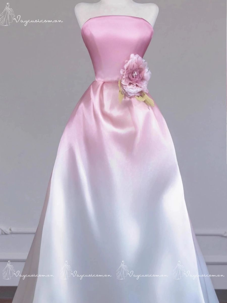 VC94 Váy Cưới Satin Nhẹ Nhàng Không Dây 1