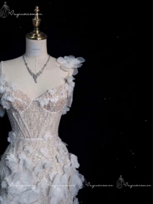 - Váy Mermaid: Ôm sát cơ thể, khoe trọn đường cong, phù hợp cho những cô dâu yêu thích phong cách quyến rũ.