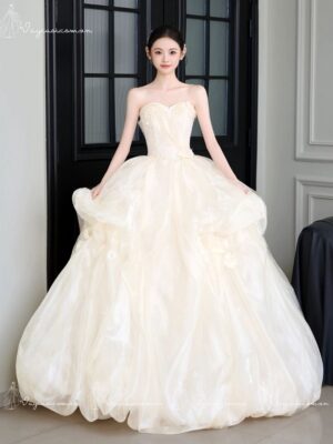 - Váy Ball Gown: Thiết kế xa hoa, hoàn hảo cho những cô dâu muốn có một ngày cưới lộng lẫy.